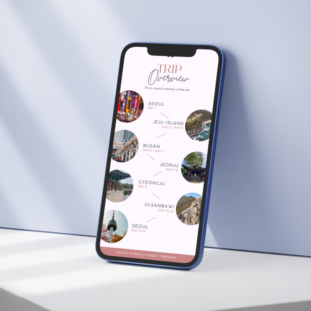 Ready to explore South Korea like a local? This digital travel guide is your all‑in‑one companion, designed for curious travelers who want the perfect mix of culture, food, and adventure. Inside, you’ll find a detailed 2‑week itinerary covering Seoul, Busan, Gyeongju, Jeju, and hidden gems off the tourist trail.